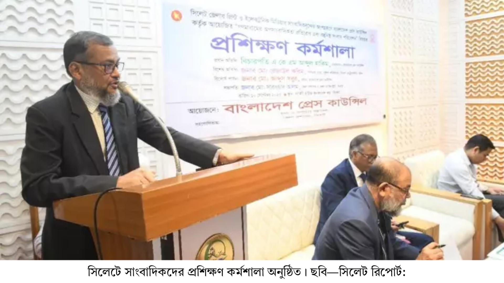 সিলেটে প্রিন্ট ও ইলেকট্রনিক মিডিয়ার সংবাদকর্মীদের নিয়ে “অপসংবাদিকতা প্রতিরোধ ও বস্তুনিষ্ঠ সংবাদ পরিবেশন” শীর্ষক একটি দিনব্যাপী প্রশিক্ষণ কর্মশালা অনুষ্ঠিত হয়েছে। বুধবার দুপুরে সিলেট সার্কিট হাউজের সম্মেলন কক্ষে এ কর্মশালার আয়োজন করে বাংলাদেশ প্রেস কাউন্সিল। অনুষ্ঠানে সভাপতিত্ব করেন সিলেটের অতিরিক্ত জেলা প্রশাসক পদ্মাসন সিংহ। প্রধান