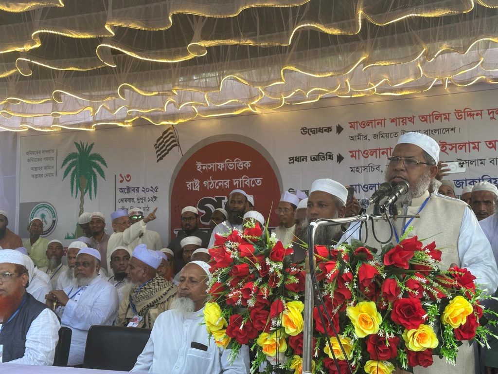 তিনি আরও বলেন, ইনসাফ ইসলামের শিক্ষা। যারা ইসলামের নামে রাজনীতি করে অথচ তলে তলে ইসলামের ক্ষতি করে, তাদের ক্ষমতায় আসার সুযোগ দেওয়া যাবে না। ইনসাফভিত্তিক সমাজ ও রাষ্ট্র প্রতিষ্ঠায় সবাইকে হক ও সত্যের পক্ষে থাকতে হবে। তাই আসন্ন জাতীয় নির্বাচনে খেজুর গাছ প্রতীকে ভোট দিয়ে ইনসাফ প্রতিষ্ঠার সংগ্রামকে এগিয়ে নেওয়ার আহ্বান জানান।